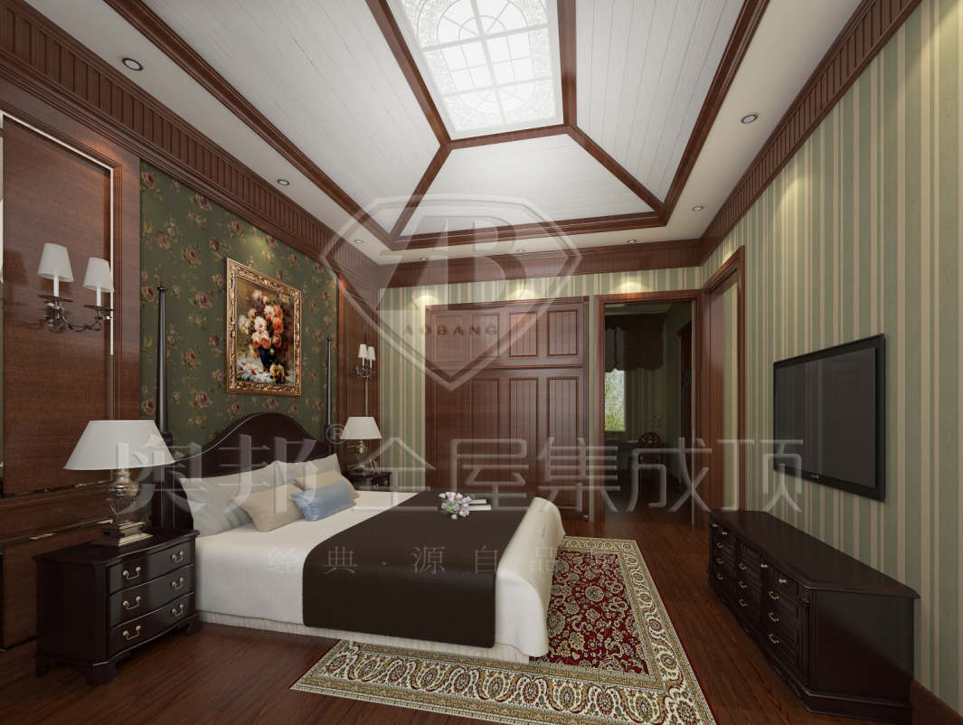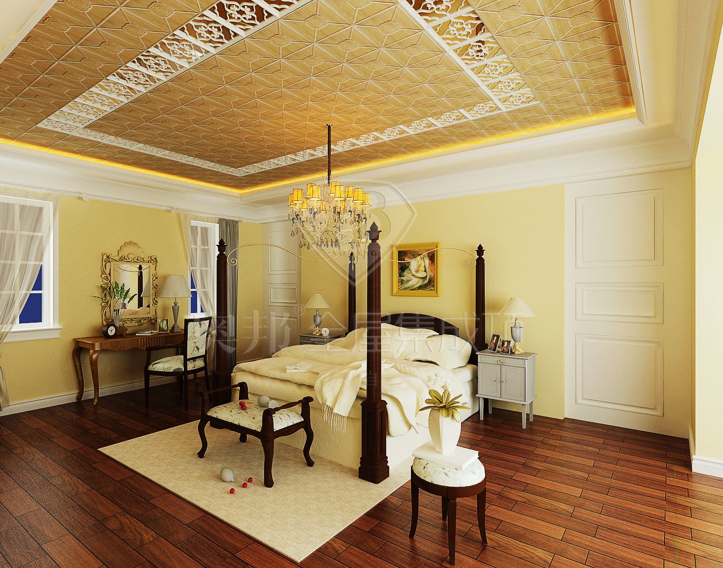 卧室顶面作适当的装饰,不仅能美化室内环境,还能营造出丰富多彩的室内空间艺术形象。在选择吊顶装饰材料与设计方案时,要遵循既省材、牢固、安全、又美观、实用的原则。吊顶不易过于复杂,面积稍大的可做二级吊灯、分层吊顶,小空间适宜平面式吊顶,而空间层高低的则可用特殊的贴顶式安装方法进行吊顶。
